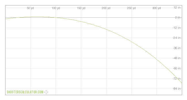 Drag Function: G1 Ballistic Coefficient: 0.230 Bullet Weight: 325 gr Initial Velocity: 1800 fps Sight Height : 1.5 in Shooting Angle: 0° |